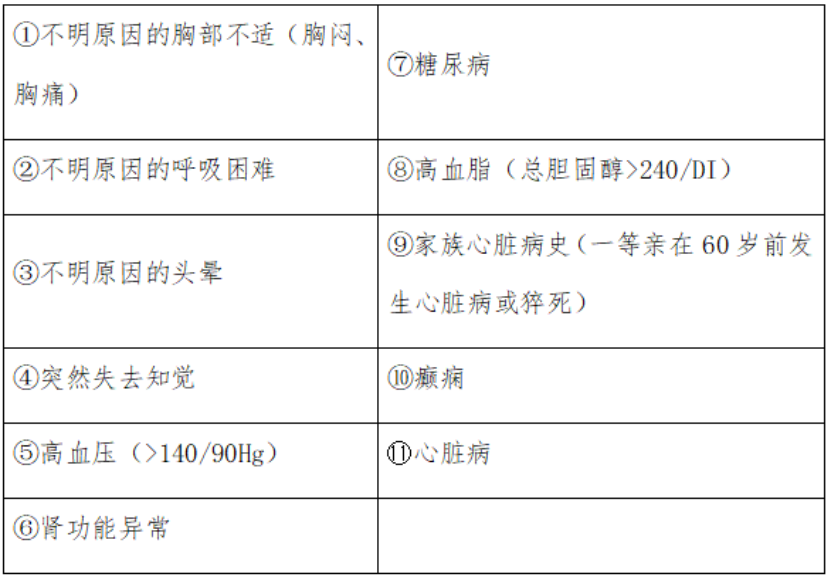 有以下疾病状况,属猝死高危险人群,请咨询医师专业的判断,请勿勉强参赛: