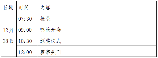 (1)所有参赛选手当天需提前1小时在比赛指定检录地点参加检录,赛前15分钟停止检录,未检录者视为自动放弃,未经检录而进行比赛者成绩无效。
