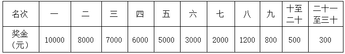 1、名次奖:半程马拉松以净计时成绩录取男/女前三十名;如果对应名次运动员发现违规,取消该运动员名次,后面名次不递增。奖金见下表(单位:人民币/元)